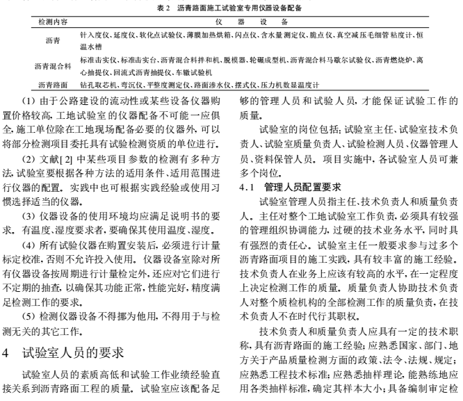 (1)瀝青路面施工試驗(yàn)室包括集料 、化學(xué)、瀝青、力學(xué)等試驗(yàn)項(xiàng)目 , 試驗(yàn)室面積要達(dá)到一定的要求, 做到布置合理、互不干擾、操作方便。