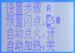 1、設(shè)置步驟應(yīng)設(shè)置為A狀態(tài),自動點(diǎn)火為開狀態(tài),自動加熱為開狀態(tài)。